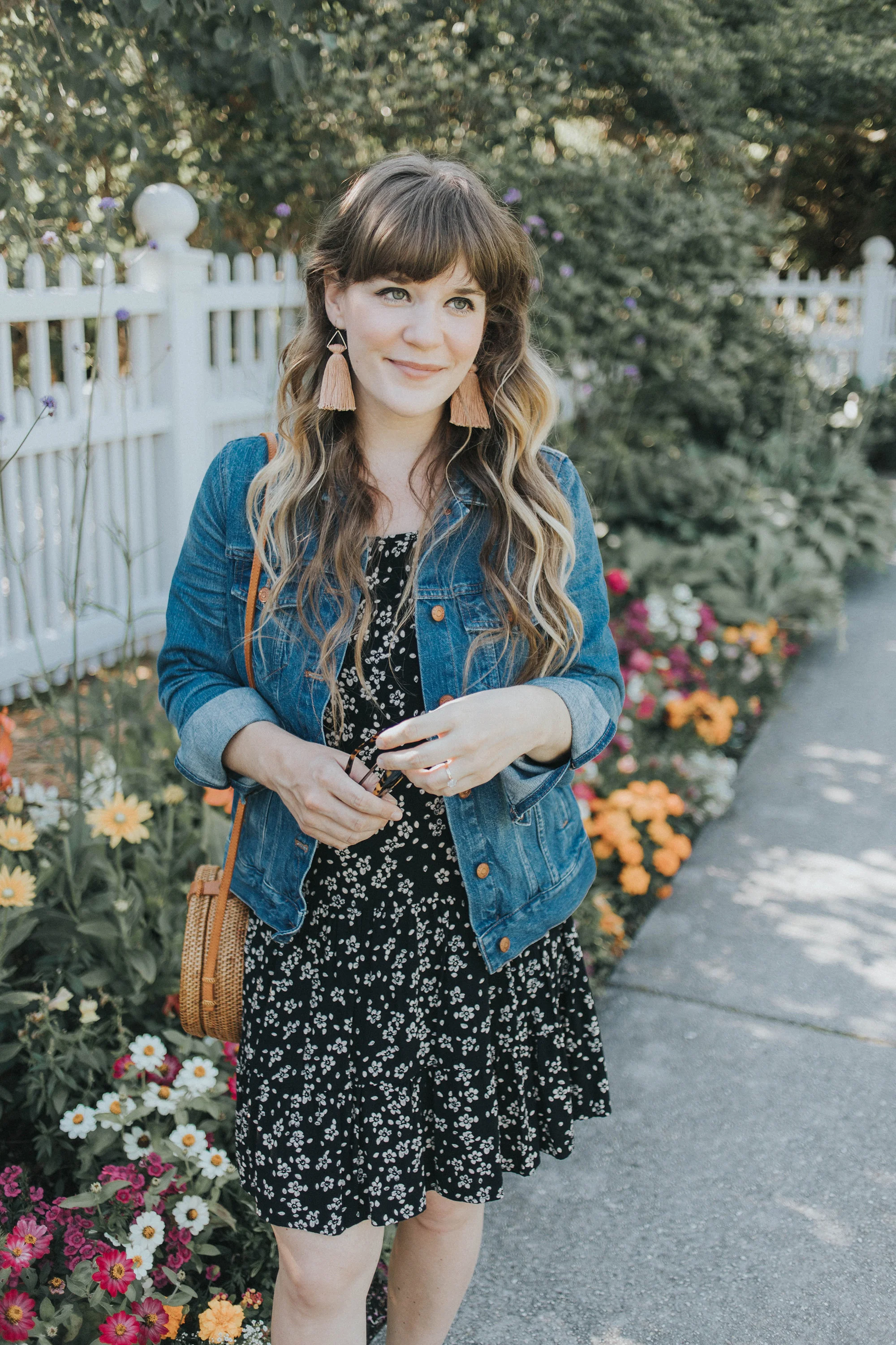 A classic floral dress + denim jacket is definitely one of my favorite go-to outfits in the summer. I found these adorable pink tassel earrings in the Artist Market of Mackinac Island. I snatched them up immediately! I love the fun vibe they add to this outfit, plus it's always great to support local artists. Strolling through the gift shops was so fun... I got a few things from a cute Michigan print to these earrings and a fun new floral pouch for traveling. I love picking up new things from places we travel. That way there is a special memory associated with it!