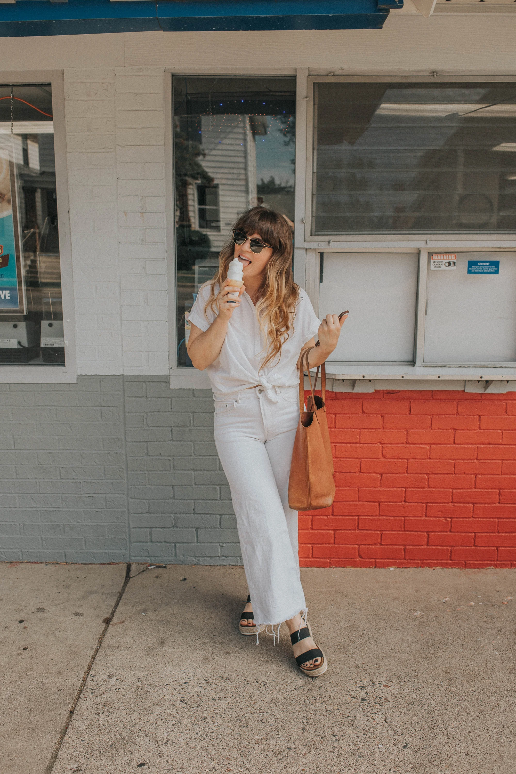 I’m wondering if in autumn… I try this monochromatic look with all burnt orange? We all know I have enough pieces in that color to make that happen. Hahaha. Anyone else thinking autumn yet? I’m holding onto summer HARD, but it’s hard to not shop for autumn clothes, especially when so many cute ones are hitting stores now. So I did end up picking up a new cardigan, some wide-leg black pants, some new flats and a black denim jacket. But most everything I can wear now in summer. It’s just that chunky bobble cardigan I got from Madewell, I cannot wait to cozy up in that with a warm soy chai tea latte this fall! Okay, excuse me. No more daydreaming about autumn — back to living in the present moment. That includes windows down, sunshine, road trips and all the good summer things!