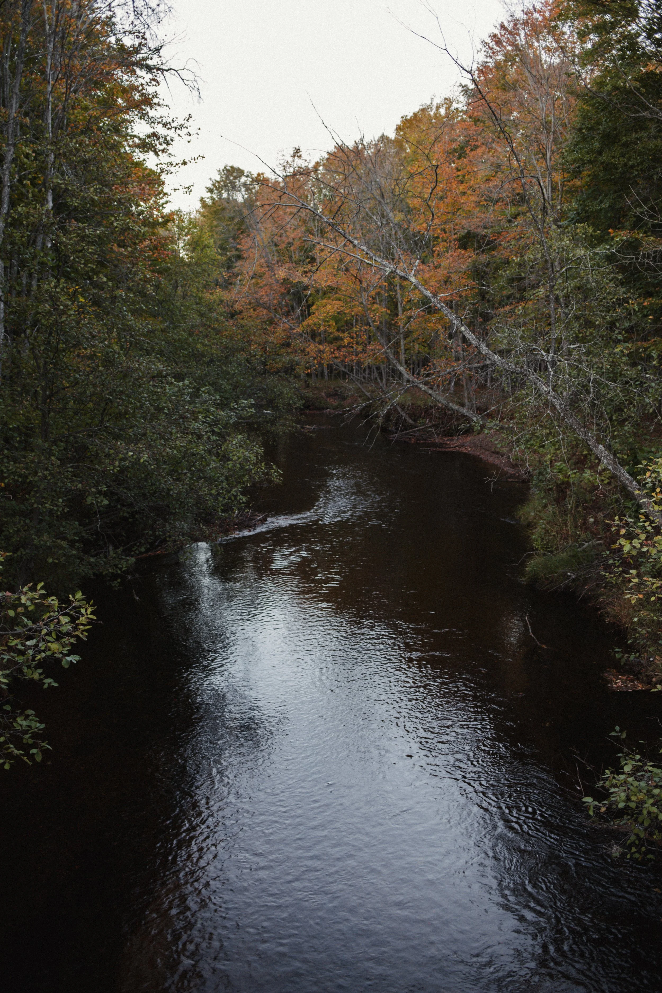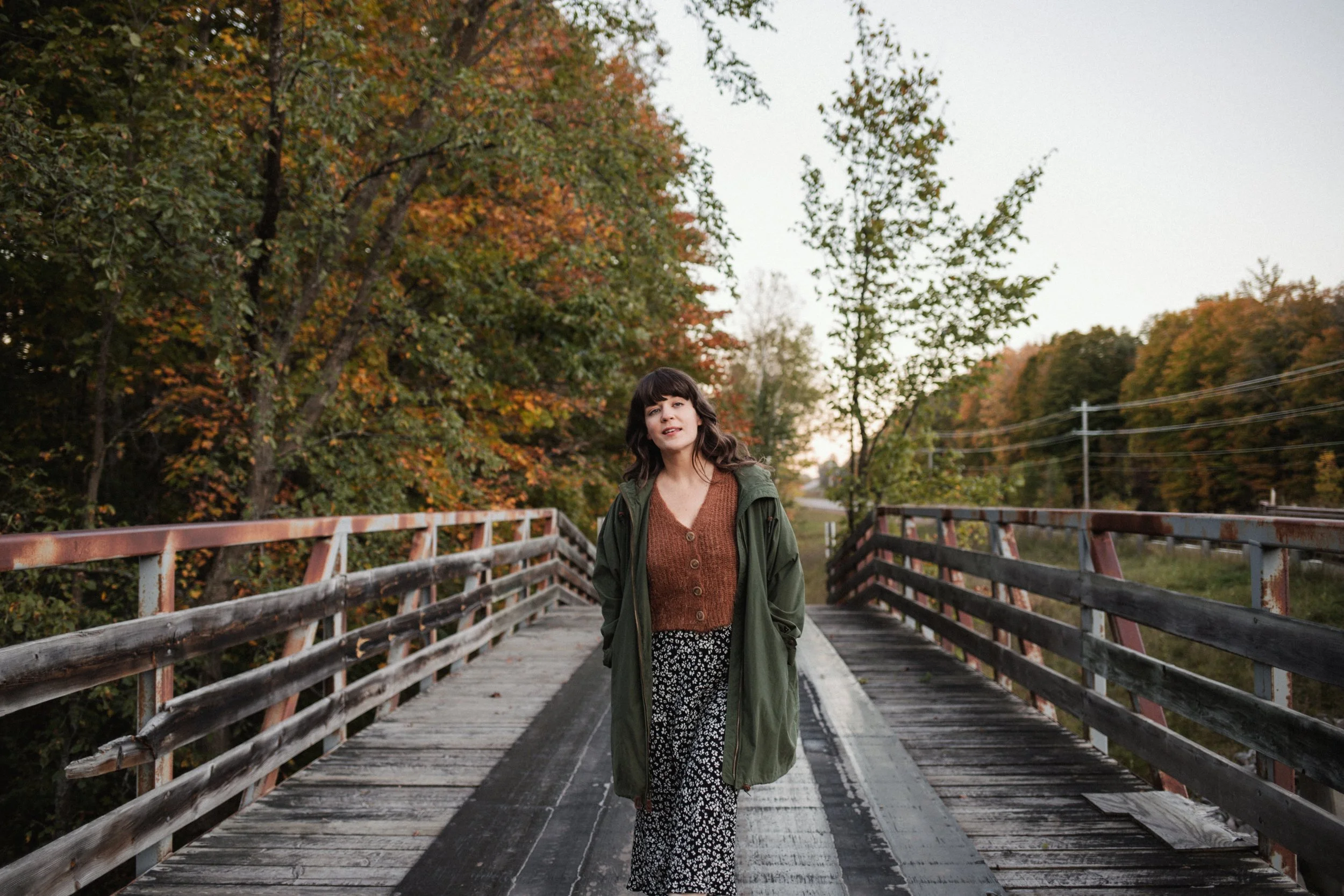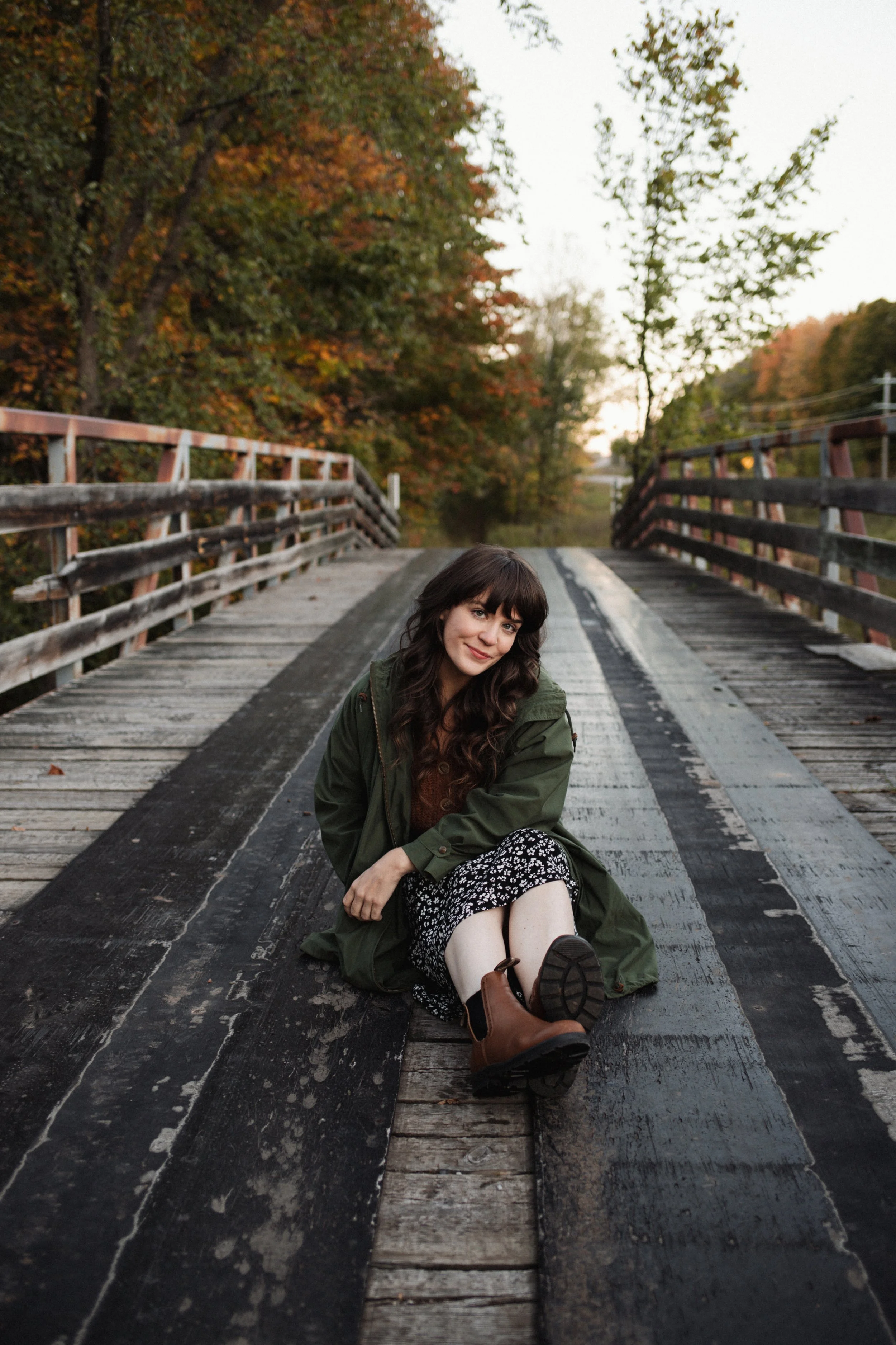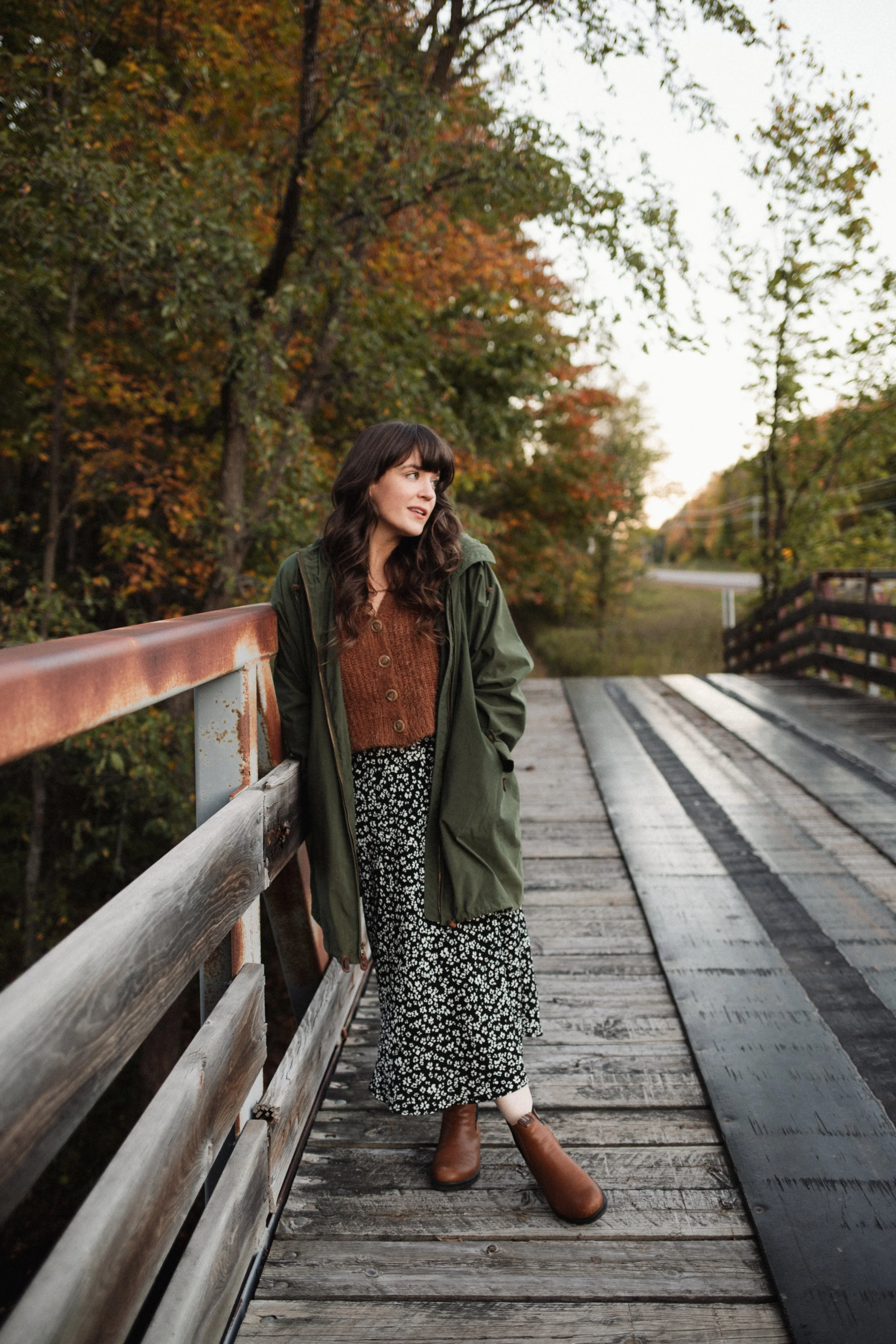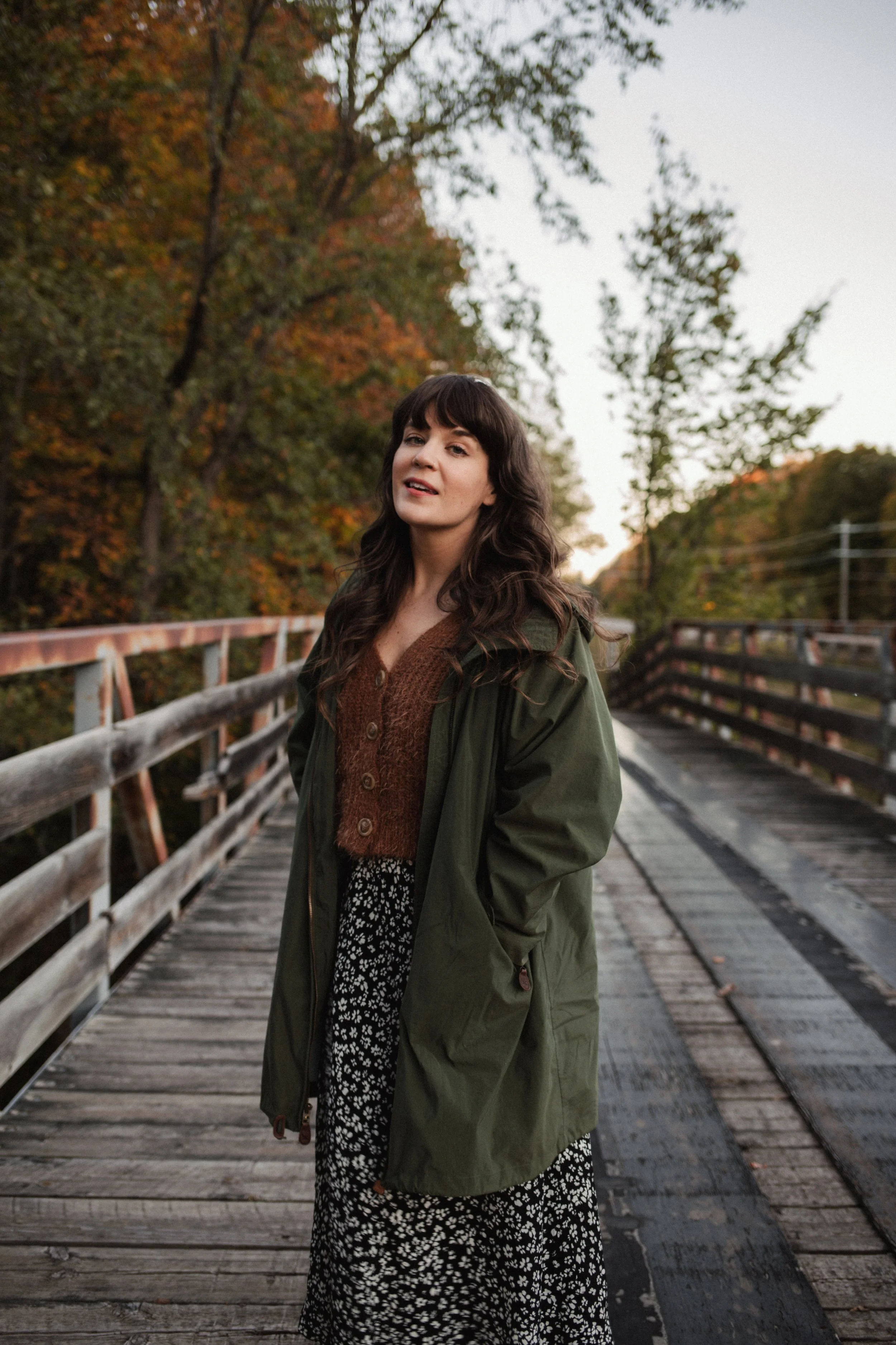 Living in the Upper Peninsula for five years now (what!), I’m quickly becoming a location repeater, just because… I have my favorite spots up here in different seasons now! This bridge, well not even technically a bridge, but it’s a snowmobile bridge over the Yellow Dog River near Big Bay, but it’s just a vibeeeee! I always like how my photos turn out here. Plus, I honestly love tradition… and routines, it’s grounding? Like something to look forward to every year? Also takes some guesswork out of where to take photos? I don’t know. But I ventured out here quickly on a weeknight, was racing to make sure I hit that golden hour light, and wore a little bit different of an outfit! We finally have some chillier temperatures up here, so I can layer, and I just love autumn style and colors. It’s the best.